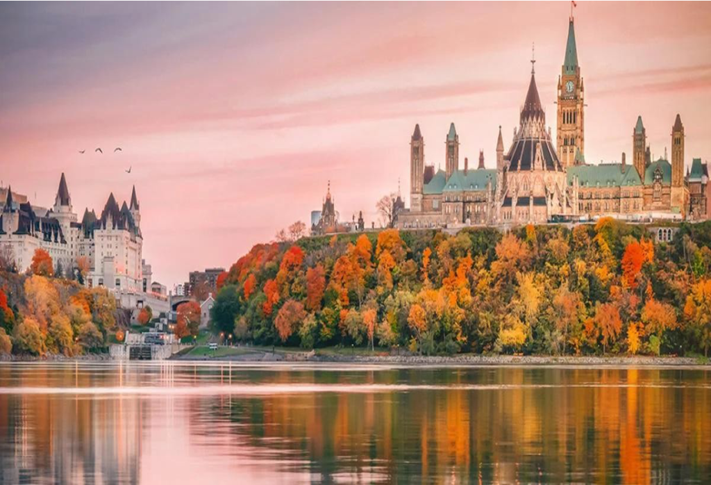 Đoàn ra sân bay đón chuyến bay PD262 cất cánh 07h00 đến thủ đô của Canada – Ottawa 14h45 (thời gian bay gần 5 tiếng). Du khách dùng bữa trưa rồi tham quan Tòa nhà Quốc Hội (Chụp ảnh bên ngoài)