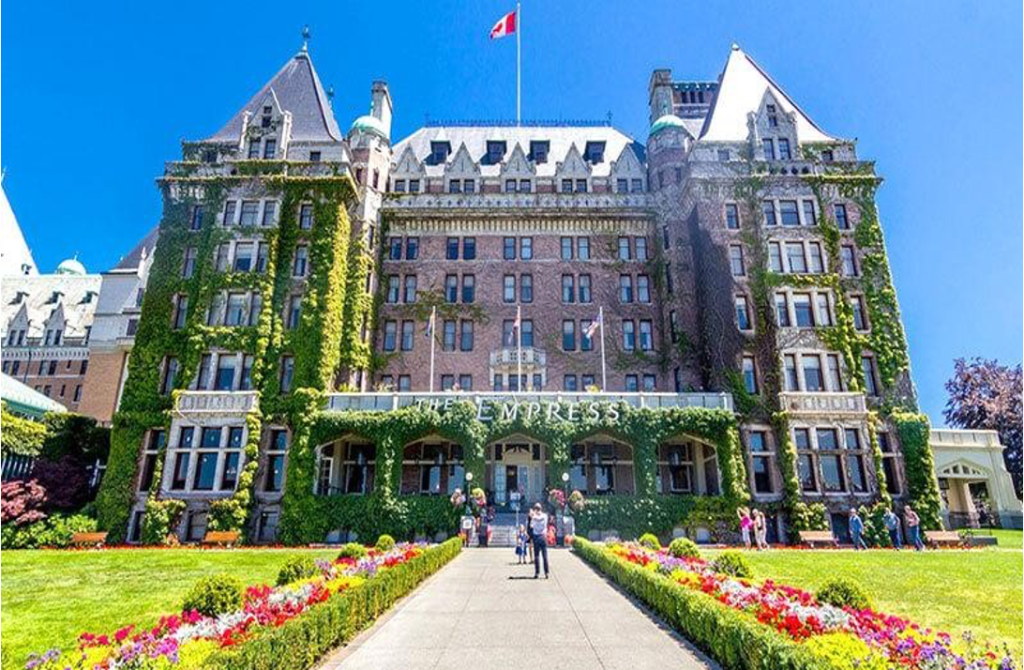 Chụp hình bên ngoài ks Empress cổ và nổi tiếng nhất ở Victoria. Được xây dựng năm 1904 – nơi đón tiếp nhiều vị vua + hoàng hậu + ngôi sao điện ảnh nổi tiếng trên thế giới.